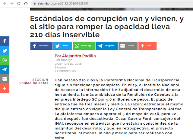 Nota redactada por Padilla en diciembre del 2016. Sitio: Sin Embargo