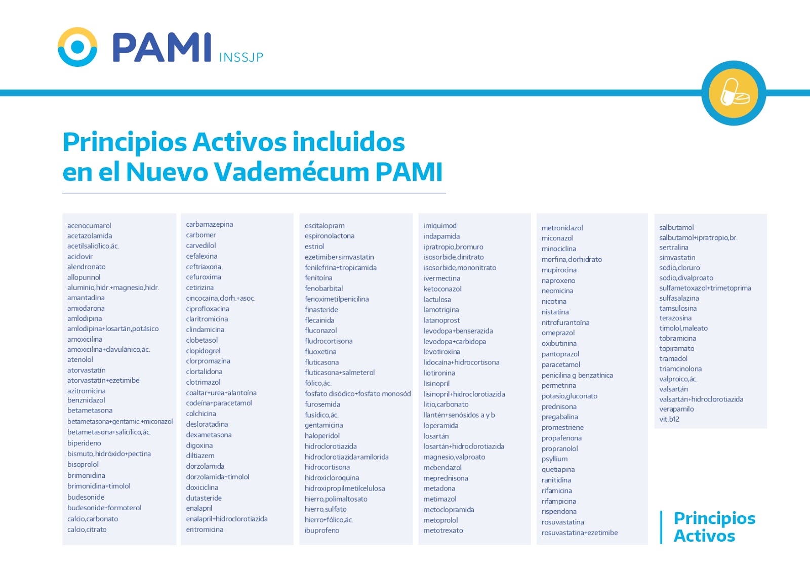 El 11 de marzo, tras el anuncio del presidente Alberto Fernández, PAMI incorporó 170 nuevos medicamentos a su Vademécum. Este es un listado de medicamentos esenciales y gratuitos para sus afiliados de mayores de 60 años, que no cuentan con prepaga.